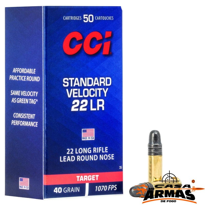 Munição CCI 22LR STANDARD VELOCITY TARGET OGIVAL 40GR – CX 50